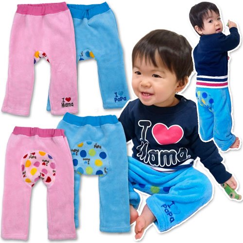 (アイラブパパ&ママ)I lovePaPa&Mama 2015 おしり水玉柄 裾刺しゅう入り ソフトフリース モンキーパンツ 80cm ママピンク