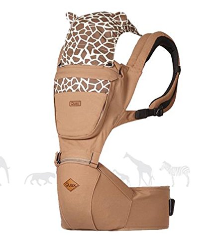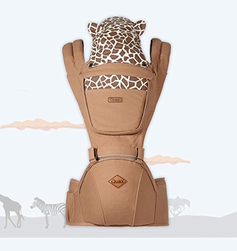 i-angel Quax 赤ちゃんヒープシートキャリア抱っこひも 多機能おくるみおんぶ子守帯動物の友人キリン ダークベージュ