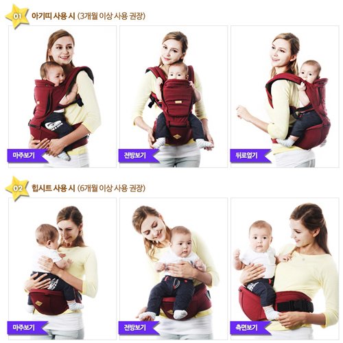 - ママも赤ちゃんも楽に使用できる抱っこひも「ヒップシートキャリア」 イスのような台座(ヒップシート)と幅広腰ベルトにより赤ちゃんの体重をしっかりと支えます。