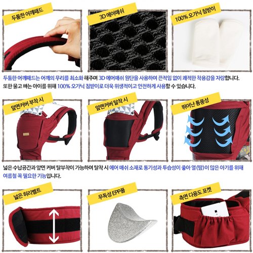 - 側面には多目的ポケットがついています。 エアメッシュ素材で、赤ちゃんが汗をかいても通気性がよく、快適に過ごせます。 厚みのある肩パッドは肩に負担を与えず、 3Dエアメッシュ素材を使用しているので着用感も優秀です。