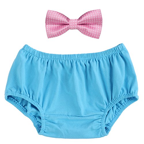 新生児写真撮影小道具 子供服 ベビー服 夏 ショーツ蝶ネクタイ2点セット 赤ちゃん男の子 下着パンツ 3-24か月 パンツ コスチューム 寝相アート 着ぐるみ 出産祝い 可愛い (ブル&ピンク)
