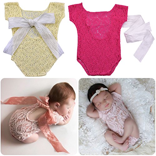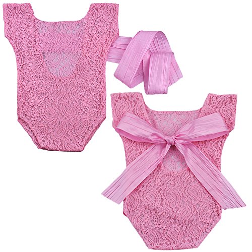 - 新生児の赤ちゃんは、レースのロンパースの写真の小道具