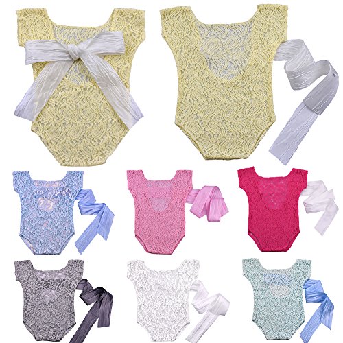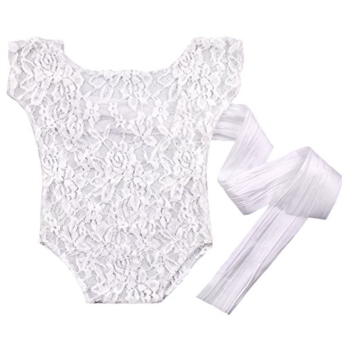 - 新生児の赤ちゃんは、レースのロンパースの写真の小道具