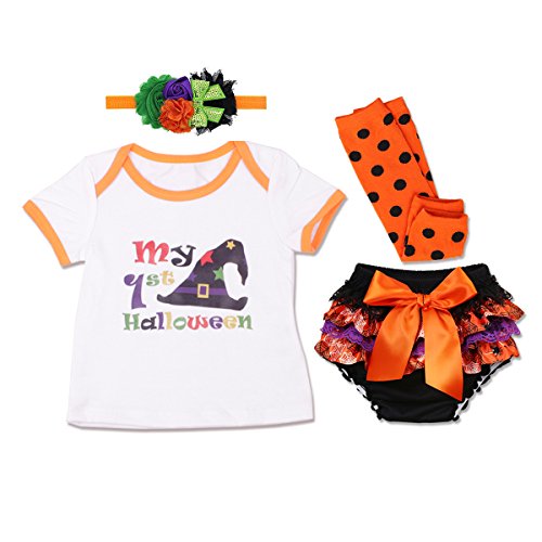 IBTOM CASTLE 子供服 ベビー服 カバーオール Tシャツ チュールブルマ レッグウォーマー ヘアバンド付き ガールズ キッズ 下着パンツ 幼児 可愛い 半袖 夏 4点セット 上下セット フォーマル プリント お嬢様 (S, ホワイト)