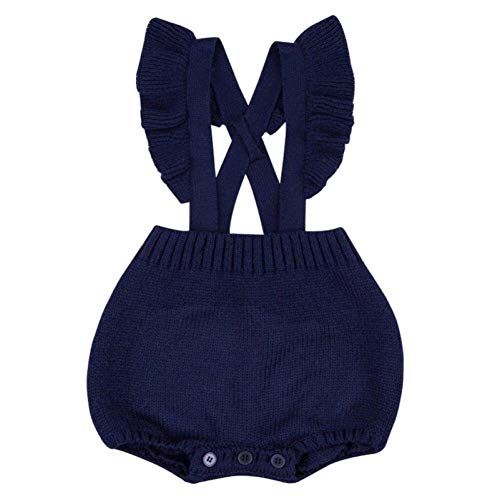 - 愛らしい新生児の女の子のノースリーブ編みサスペンダーロンパー