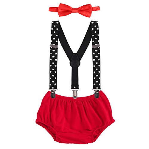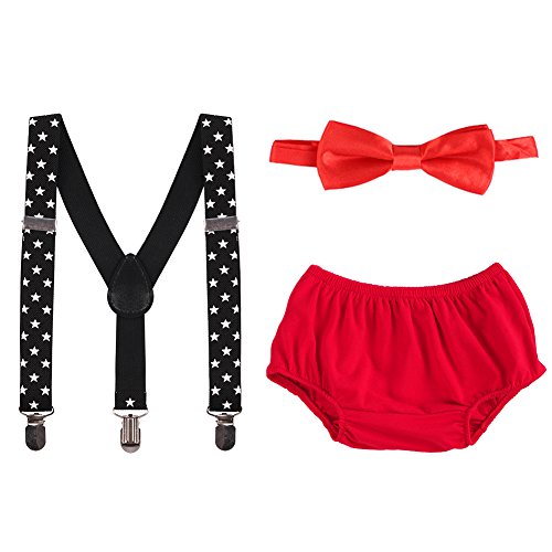 子供服 ベビー服 夏 3点セット 蝶ネクタイ ズボンつり 半ズボン 赤ちゃん 着ぐるみ 新生児 男の子 下着パンツ 3-24か月 サロペットパンツ (赤&星柄)