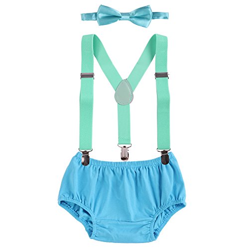 子供服 ベビー服 夏 3点セット 蝶ネクタイ ズボンつり 半ズボン 赤ちゃん 新生児 3-24か月サロペットパンツ (ブル&グリーン)