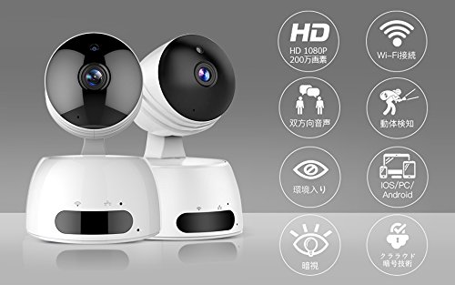 ICOCO ネットワークカメラ ワイヤレス 2.4G WIFI セキュリティカメラ 赤外線ナイトビジョン1080P 200万画素 H.264ビデオ圧縮 スマホ対応 暗視撮影 マイク内蔵 動体検知 双方向音声 首振り式 遠隔操作 日本語アプリ 日本語取扱説明書付き