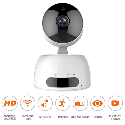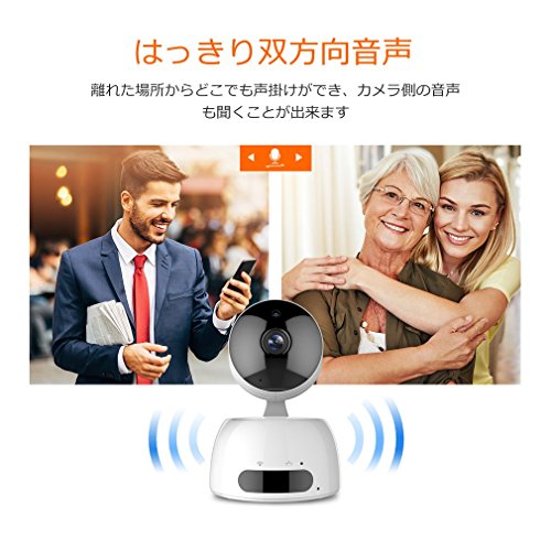 - 【音声双方向機能】カメラの本体の中で、マイクロフォンを内蔵し、離れた場所に設置されているネットワークカメラを利用し、通話・通信することが出来ます。家族内連絡の場合は便利の上、通話料金も節約します。万が一泥棒がは入ったら、とおいところでしかってやめさせて、重大な損失を免れます。