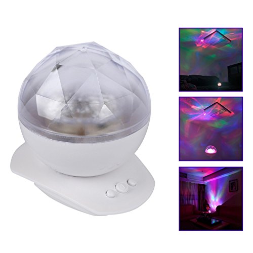 iCoco Aurora Borealisプロジェクタナイトライトランプ、LED夜間ライトwithスピーカー音楽mp3子供部屋子供部屋に、装飾のカラー変更ムードライト、寝室、リビングルーム(ホワイト)