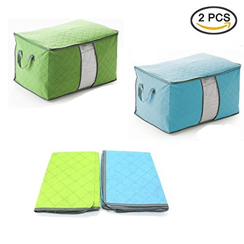 2pcs竹チャコールLarge耐久性ストレージコンテナバッグ、グリーン&ブルー