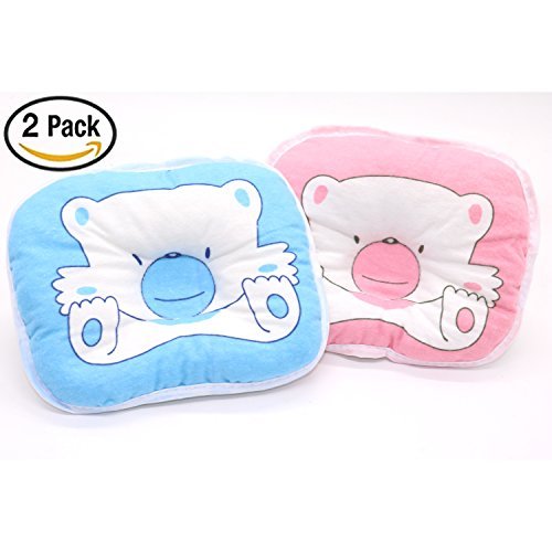 2パックベビー枕かわいい漫画Bear赤ちゃんアンチロール枕ベビー枕ベビーanti-biasヘッドレスト、ピンクとブルー