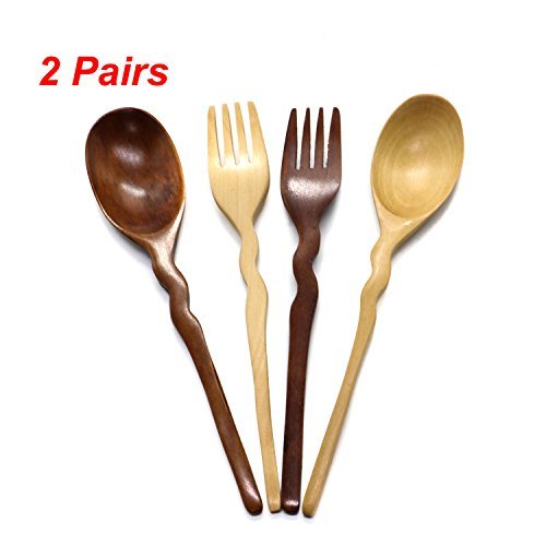 ID木製ディナースプーンとフォークセット用品Flatware、2ペア