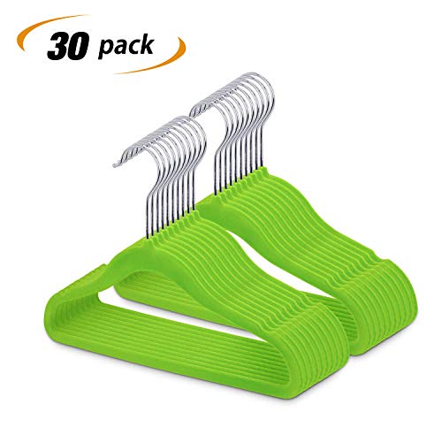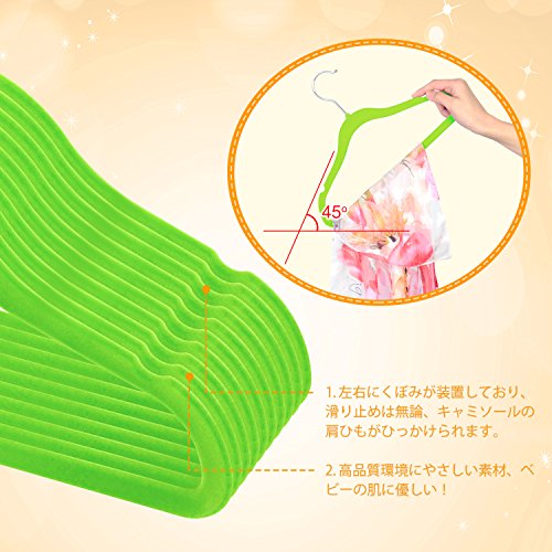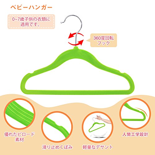 IEOKE ベビーハンガー こども用 すべらない 洗濯 クロゼット収納 回転フック 30本組 (グリーン)