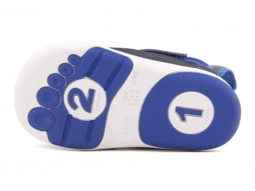 土踏まずのアーチ形状をサポートする「ウインドラスソーサー」搭載し、足育を考えたベビー用カジュアルシューズ。インソールのふたつの「くぼみ」で足のヨジレやネジレを防止し、正しい姿勢のしっかりした歩行と土踏まずのアーチ形成を促進します。靴底には、幼児の「着地から、すぐ蹴り出し」というヨチヨチ歩きをサポートするツーステップソールを搭載。スムーズに曲がるソールと、適度なつま先の反り返りが、歩行をサポートしながら、つまずきを防止します。また、履くとき便利なプルストラップを、指を入れやすい外側に付け、履きやすいように工夫しています。嬉しいキネティックベルトタイプで、足にフィットする脱ぎ履きラクラクなデザイン♪ 中敷は履く時に間違えないよう、左右別の色になっています。はじめての靴としておすすめの1足です!※展開サイズ:キッズ
