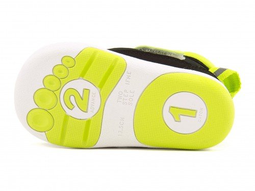 土踏まずのアーチ形状をサポートする「ウインドラスソーサー」搭載し、足育を考えたベビー用カジュアルシューズ。インソールのふたつの「くぼみ」で足のヨジレやネジレを防止し、正しい姿勢のしっかりした歩行と土踏まずのアーチ形成を促進します。靴底には、幼児の「着地から、すぐ蹴り出し」というヨチヨチ歩きをサポートするツーステップソールを搭載。スムーズに曲がるソールと、適度なつま先の反り返りが、歩行をサポートしながら、つまずきを防止します。また、履くとき便利なプルストラップを、指を入れやすい外側に付け、履きやすいように工夫しています。嬉しいキネティックベルトタイプで、足にフィットする脱ぎ履きラクラクなデザイン♪ 中敷は履く時に間違えないよう、左右別の色になっています。はじめての靴としておすすめの1足です!※展開サイズ:キッズ