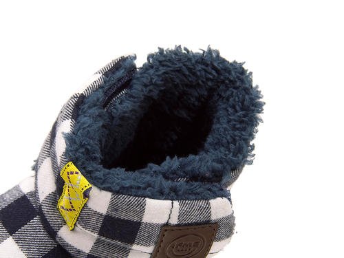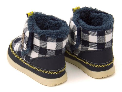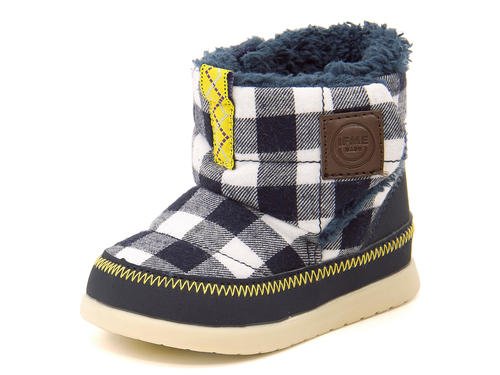 ふわふわのボアを使ったキュートなベビーブーツ☆ アッパーにはアウトドアライクなチェック柄、内側にもふわふわ・モコモコのボアを使用し、とても暖かで、見た目にも可愛らしい一足です♪ 履き口の両側に面ファスナーを使用し、口が大きく開くので、履かせやすいのも高ポイント☆ インソールには、健康な土踏まずの形成を促進する「ウインドラスソーサー」を採用!足指の自由な運動を引き出し、はだしで大地をつかむような感覚で歩ける高機能中敷です。「親指のつけ根部分」と「5本指のあたるところ」のふたつのくぼみが足のヨジレやネジレを防止し、正しい姿勢のしっかりとした歩行をサポートします。また中敷は履く時に間違えないよう、左右別の色になっています♪ はじめてのブーツとしてもおススメです!※展開サイズ:キッズ