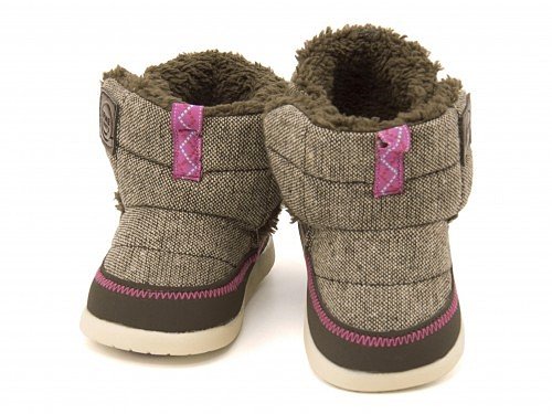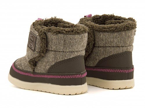 ふわふわのボアを使ったキュートなベビーブーツ☆ アッパーには季節感あるツイード調素材、内側にもふわふわ・モコモコのボアを使用し、とても暖かで、見た目にも可愛らしい一足です♪ 履き口の両側に面ファスナーを使用し、口が大きく開くので、履かせやすいのも高ポイント☆ インソールには、健康な土踏まずの形成を促進する「ウインドラスソーサー」を採用!足指の自由な運動を引き出し、はだしで大地をつかむような感覚で歩ける高機能中敷です。「親指のつけ根部分」と「5本指のあたるところ」のふたつのくぼみが足のヨジレやネジレを防止し、正しい姿勢のしっかりとした歩行をサポートします。また中敷は履く時に間違えないよう、左右別の色になっています♪ はじめてのブーツとしてもおススメです!※展開サイズ:キッズ