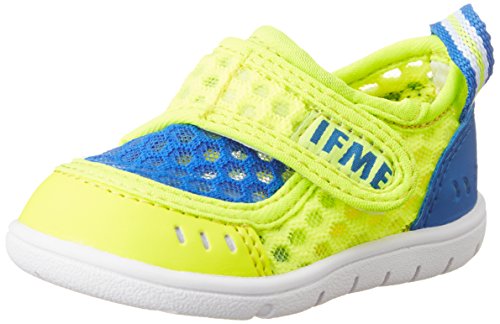 足に優しくで大人気の子供靴『イフミー』から、 思いっきり水と遊べる、夏が大好きになる1足です。 「水抜きソール」と速乾素材で、水に濡れても足元は快適。 【ツーステップソール】 幼児の歩きは着地、すぐ蹴り出しとツーステップで成り立っています。 そんなヨチヨチ歩きをサポートする独自開発の2種のソールを採用。 【ウインドラスソーサー】 高機能中敷き“ウインドラスソーサー”で、「親指のつけ根部分」と「5本指のあたるところ」の ふたつの“くぼみ”が足のヨジレやネジレを防止、正しい姿勢のしっかりした歩行と土踏まずのアーチ形成を促進します。 【水抜きソール】 ウォーターシューズの高機能中敷き“ウインドラスソーサー”にも、くつ底(アウトソール)にも水抜き用の穴を設けました。 くつの中に入った水は、自然に外に排出してしまいます。 中敷きには速乾性に優れたEVA素材を採用。 アッパー部分も通気性や速乾性にも優れていますから、お手入れも簡単です。 【アウトサイドストラップ】 かかとにつけたプルストラップは指が入れやすいように、中心より外側につけました。 ほんのわずかな事ですが、履きやすさがダンゼン違います。