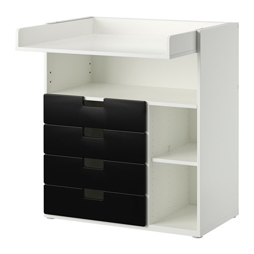 IKEA イケア STUVA チェンジングテーブル 引き出し4個付き ホワイト,ブラックベビーおむつ替え収納 90x79x102 cm