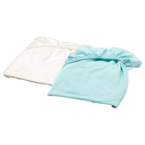 IKEA LEN 20319813 ボックスシーツ ベビーベッド用 60x120 cm ホワイト ターコイズ 2枚セット