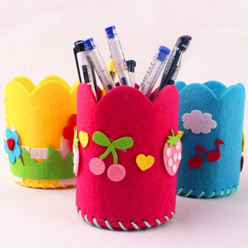 3個の日曜学校の男の子の女の子の手作り布アートペン鉛筆バッグ収納ボックスのランダム