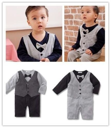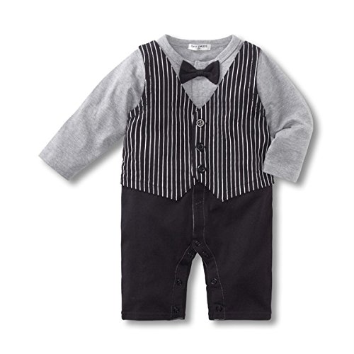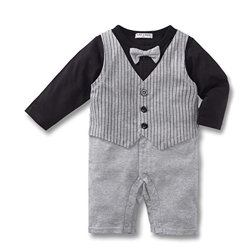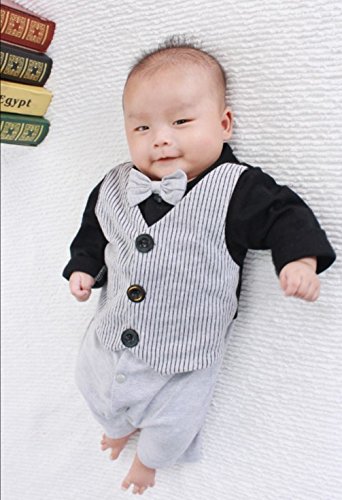 ベビーストライプベストスタイル紳士長袖ボディスーツの男の子の成長ですワンシー (12-18 Months, 灰色)