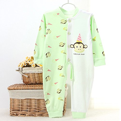 3色のかわいいおサルの赤ちゃんジャンプスーツロンパース長袖ボディスーツ (12-18M, グリーン)