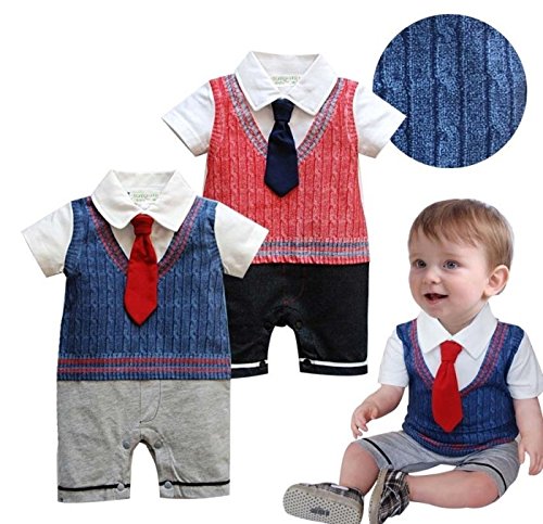 青または赤のベスト半袖ベビースーツ (12-18M, ブルー)