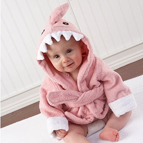 ピンクのサメの赤ちゃんのお風呂のフード付きのタオルローブ