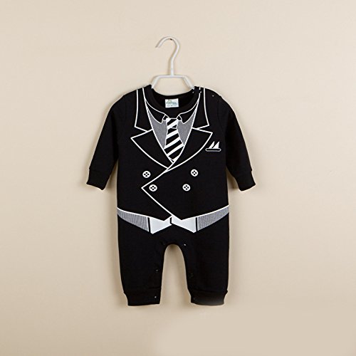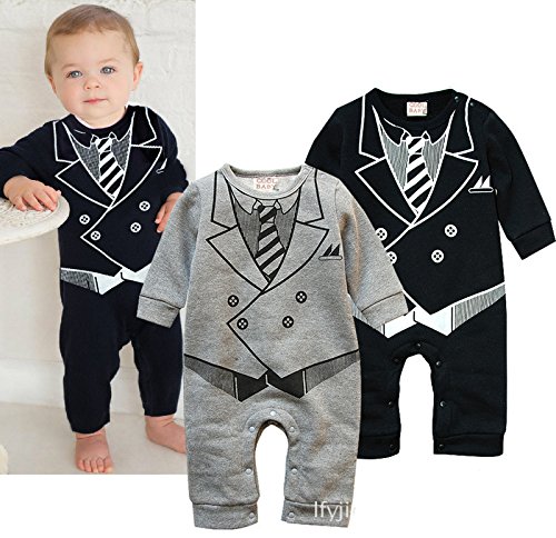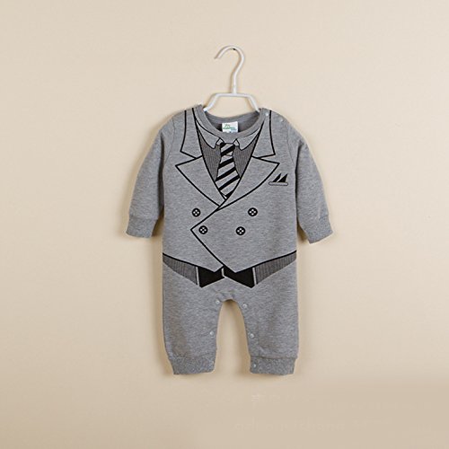 紳士スタイルブラックまたはグレー色の男の子の長袖・ジャンプスーツ・ロンパース (12-18M, 灰色)