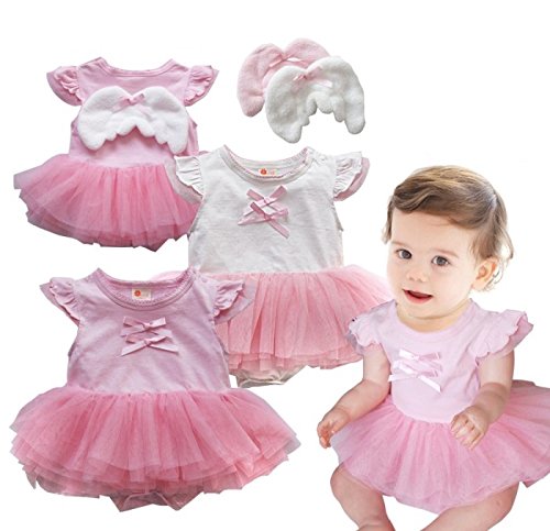かわいい天使の羽半袖ベビースーツ (12-18M, ホワイト)