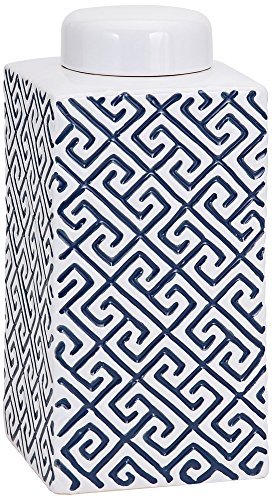 克服伝統的なギリシャキーモチーフで、長方形の小さなローマでCanisterセラミック。製造国:中国奥行: 6食品安全性実際の高: 13素材: 100 %セラミックス屋外のセーフなしスタイルコンテンポラリー重量: 4.7横幅: 6