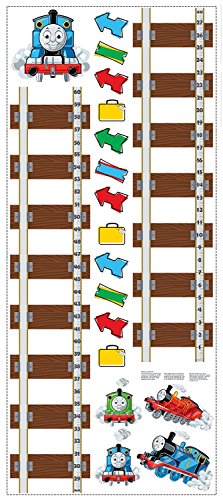 Product description Hop aboard with our fun Thomas & Friends Growth Chart! Decorate your child's room with the set's 19 Thomas the Tank & Friends themed pieces for an adorable look. Familiar shapes include Thomas and his friends, brightly colored arrow signs, luggage, train tickets, and railroad tracks marked with measurements so you can watch your little one's growth. Chart measures up to 60. From the Manufacturer All aboard! Watch your little Thomas enthusiasts grow with this ultra cute Thomas the Tank Engine and Friends Peel and Stick Growth Chart. Stick the chart on any wall, door, or mirror, and use the additional decorative elements as repositionable markers to keep on track. Don't forget to add our Thomas & Friends self-adhesive border, peel and stick wall decals, and mural (all sold separately) for a totally Thomas room makeover!