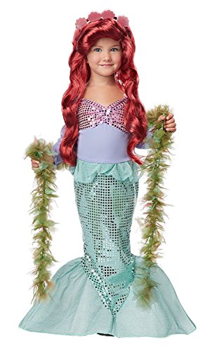 Size:Toddler (4-6) This Mermaid is ready for an undersea adventure. This sequined dress comes with a seashell headband and seaweed Boa. Wig not included.