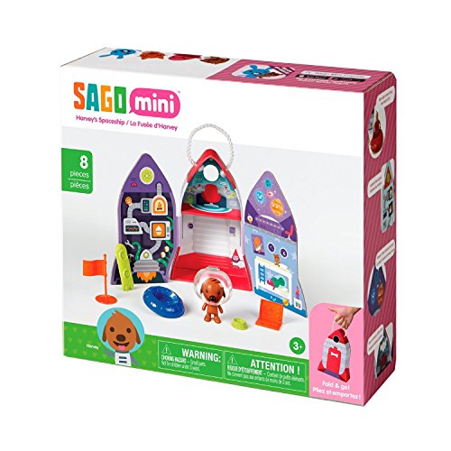The countdown to fun is on in Harvey's very own spaceship. Inspired by the Sago Mini Space Explorer app, Harvey is ready for blast off. Explore the shipÅEEÄÅEEs different modules and open the hatch for more adventure. Take a spin in the UFO or surf comet tails on the hoverboard. Everything packs up inside and has a handle so you can play anywhere in the universe!