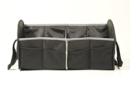 Style:Cooler/Cargo The Rubbermaid mobile double cargo Organizer is a collapsible storage unit designed to keep cargo areas in the trunk, hatch or seat organized and clutter-free. Made from durable, breathable polyester fabric, it has 2 central, spacious storage compartments and 4 smaller mesh pockets to store miscellaneous items like cellular phones and Mp3 players. The Organizer also folds up for easy storage when not in use and an elastic strap keeps it from expanding when folded. It is user-friendly and easily cleans by simply Wiping the surface with a soft, damp cloth.
