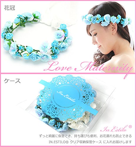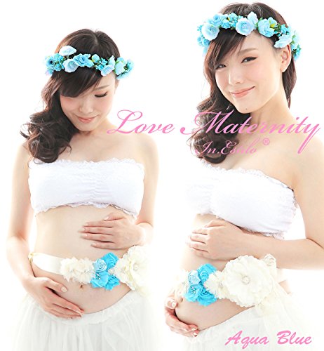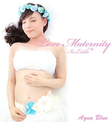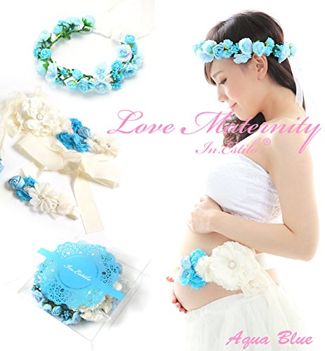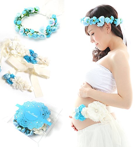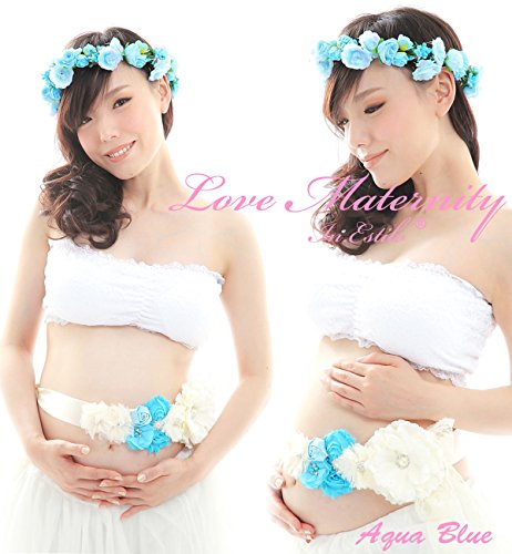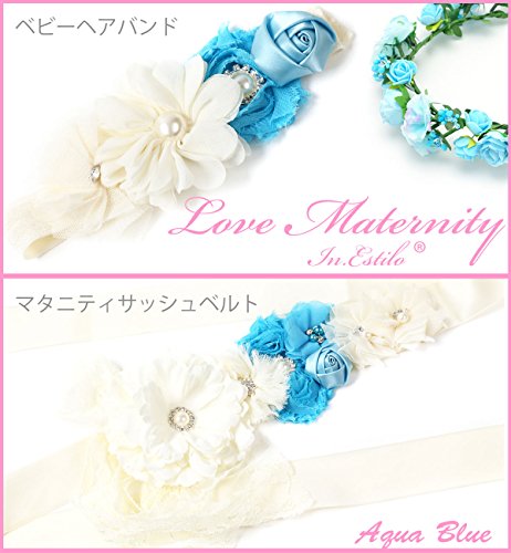 美々しく飾る マタニティフォト撮影用小物3点セット(サッシュリボンベルト、花冠、ベビー ヘアバンド)綺麗に保管できるIN.ESTILO®収納ケース (アクアブルー)