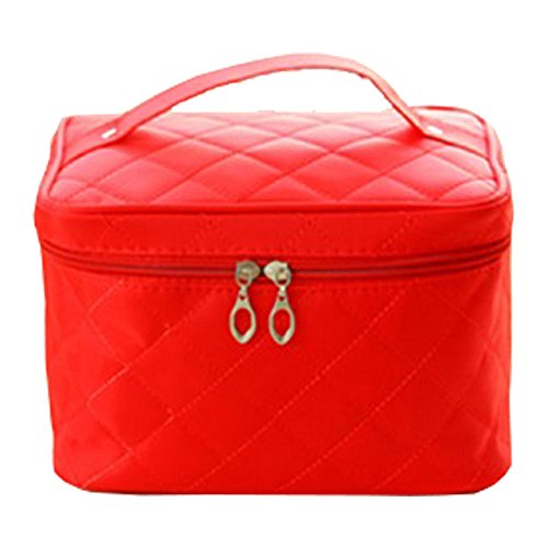 メイクポーチ 化粧ポーチ コスメバッグ バニティケース トラベルポーチ 鏡付き ドレッサー 化粧品 収納 雑貨 小物入れ 女性 超軽量 機能的 大容量!7色 (レッド)