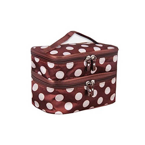 メイクポーチ 化粧ポーチ 化粧箱 コスメバッグ バニティケース トラベルポーチ 鏡付き ドレッサー 化粧品 水玉 収納 雑貨 小物入れ 女性 二段 超軽量 機能的 大容量 6色 (大きい水玉・コーヒー)