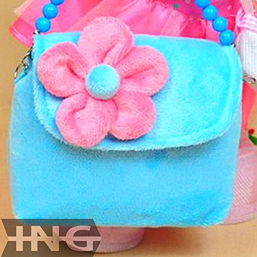 ING STYLE (イング スタイル) キッズ 2wayポーチ 子供用バッグ ストラップ2種類付属 ポシェット ショルダーバッグ ハンドバッグ 斜め掛け お花付き 可愛い 女の子 お出かけ (ブルー)