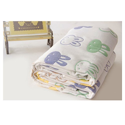 INSST 5重ガーゼケット ベビー タオルケット 優しい肌触り ウサギ柄 110×115cm