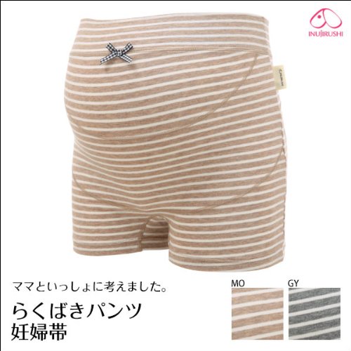 (犬印)INUJIRUSHI ボーダー柄らくばきパンツ妊婦帯(MO-モカ、L)