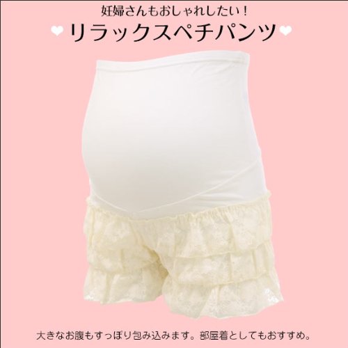 妊婦さんもオシャレしたい!そんな声を実現した、リラックスペチパンツ☆ミニワンピやロングTシャツに合わせやすく、体のラインが気になる方もフリルでガードしやすいパンツです。おしゃれ着やお部屋着にもオススメです♪ストレッチ素材で大きなお腹をすっぽり包み込みます。妊婦さんに大敵な冷え対策にもなるアイテムです。身生地は2wayに伸縮するので、快適なはき心地。お揃いのレースレギンスもございます。組み合わせてコーディネイトをお楽しみいただけます。身生地:綿95% ポリウレタン5%レース部:ナイロン ポリウレタン・着用の目安:産前・2wayに伸縮性あり・クロッチ:無し・透感:なし・股上:M-Lサイズ約34cm L-LLサイズ約36cm(※置き寸法)・股下:M-Lサイズ約8cm L-LLサイズ約9cm(※置き寸法)140603 下着 インナー パンツ ペチパンツ タップパンツ フレアパンツ 妊婦 妊娠 マタニティ 産前 ママ 母 赤ちゃん mama baby ラクチン リラックス おしゃれ レース ティアード blgw arw fbs sznpaj sznchp sznkop sjopaj sngpaj 4-sa