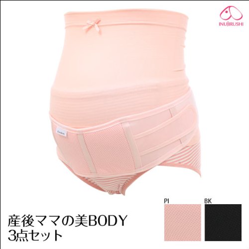 (犬印)INUJIRUSHI 産後ママの美BODY 3点セット(骨盤ベルト×ウエストシェイパー×ショーツ)(PI-ピンク、LL)