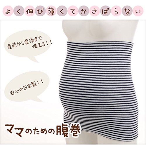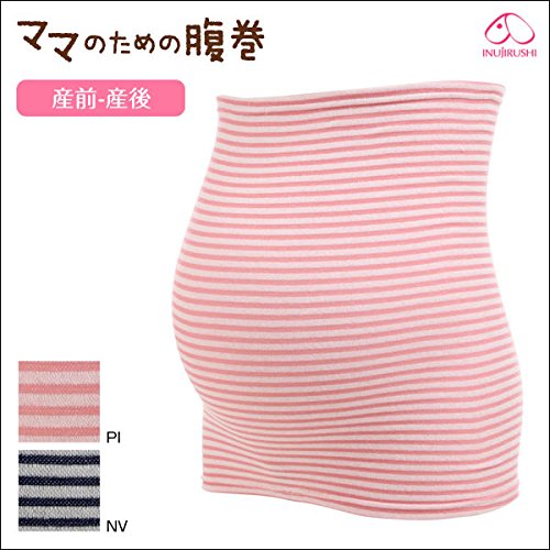 (犬印)INUJIRUSHI ママのための腹巻(ボーダー柄) 日本製 冷え対策(NV-ネイビー、M-L)