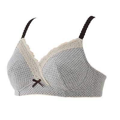 (犬印)INUJIRUSHI 母乳もれも安心 ドット柄プリント ハーフトップブラジャー(GY-グレー、L)
