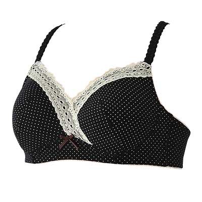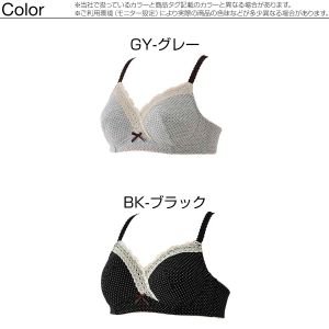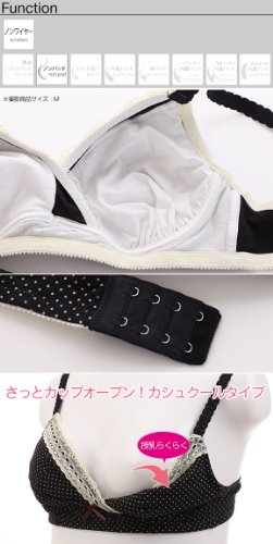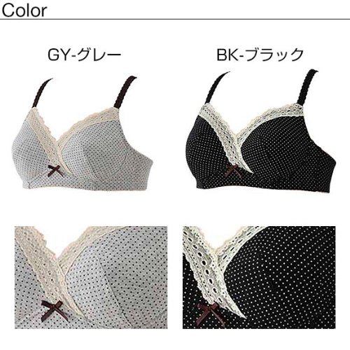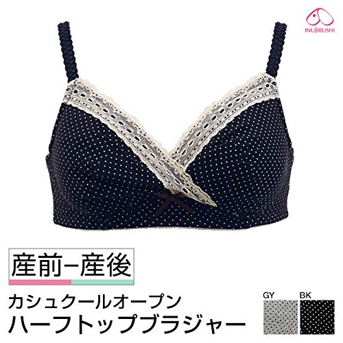 (犬印)INUJIRUSHI 母乳もれも安心 ドット柄プリント ハーフトップブラジャー(BK-ブラック、L)