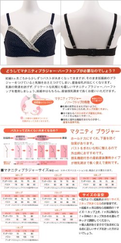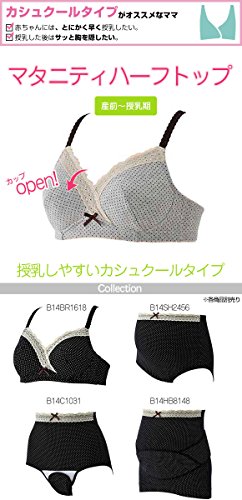 授乳期に特におすすめ★防水布付きのハーフトップブラジャーです。肌側は、綿混素材を使用しているので防水シートが直接肌に当たらずやさしいつくり。クロスオープンタイプで授乳しやすいです。ホックは4段階でアンダーバストの調整ができます。授乳機能付きの産前産後兼用タイプなので長く使えて便利です。おそろいのアイテムとのコーディネイトもおすすめです。身生地:綿95% ポリウレタン5%レース部:ナイロン ポリウレタン・着用の目安:産前-授乳期・クロスオープンタイプ・ホック数:2段4列・パッドポケットなし・肩紐取外し:不可・ノンワイヤー・サイドボーンなし