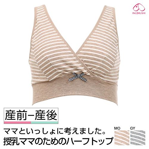 (犬印)INUJIRUSHI 授乳ママのためのボーダー柄ハーフトップ(GY-グレー、L)